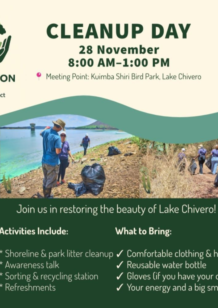 Kuimba Shiri Bird Park | 28 November | 8 AM–1 PM | Bring your hat, your water bottle, your vibes and that “let’s fix this place” attitude | Let’s revive, restore & protect our lake — one black bag at a time.