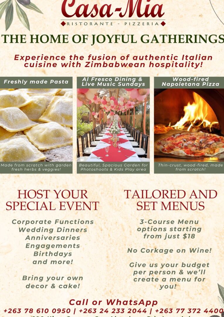 Experience the fusion of authentic Italian Cuisine with Zimbabwean Hospitality | For your special events and Tailored & set menus