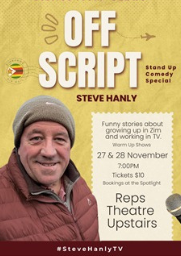 Off script with Steve Hanly | Funny stories about growing up in Zim and working in TV | 27 & 28 November | 7PM | Tickets $10
