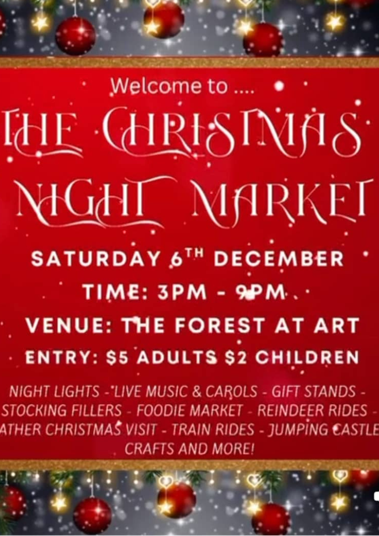 The Christmas Night Market Saturday 6th December 3 pm - 9 pm US$5 - Adults US$2 - Children under 12 Carols ๐Lights ๐ Reindeer Rides ๐Santa Train Rides ๐Live Music ๐Gift and Craft Stalls And more! The Forest at Art Farm, Harare Drive.
