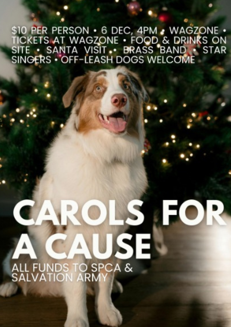 Carols For a Cause 6 December from 4pm at Wagzone Dog Park for a heartwarming Santa visit and an unforgettable Carols experience โ all in support of the SPCA and the Salvation Army. Every $10 ticket is split evenly between both organisations, turning your festive evening into meaningful impact for animals and people in need. Tickets are available at Wagzone during open hours