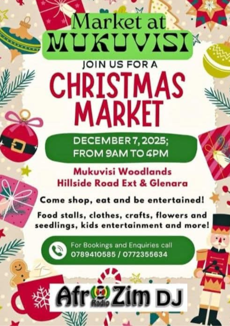 Market at Mukuvisi Sunday 7th December 9 am - 4 pm Support local, shop festive!๐ Come buy Christmas gifts and support your friendly neighbourhood market.๐ A festive day filled with food, great music, crafts, clothes, flowers, kidsโ fun, and so much more. ๐Letโs celebrate the season together! Bookings and enquiries Contact: +263 772 355 634+263 789 410 585