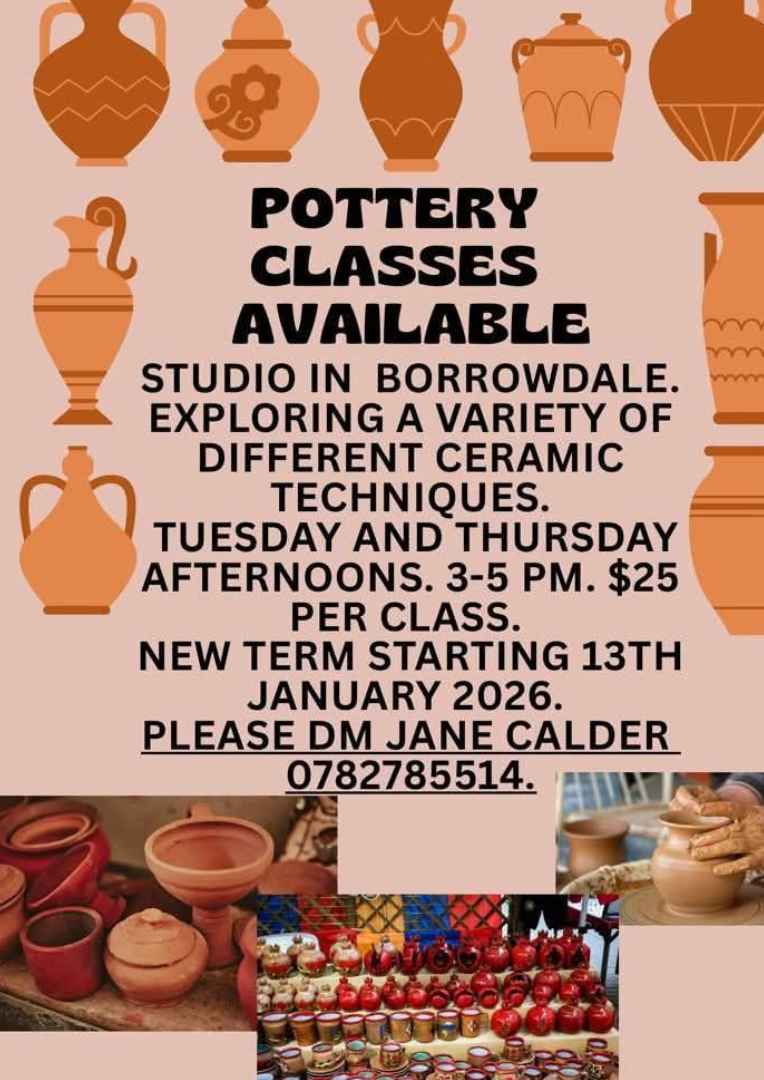 Pottery Classes Tuesday 13th January 2026 - 3pm - 5pm US$25 Explore a variety of ceramic techniques every Tuesday in our studio in Borrowdale. Book your place now. Contact Jane: WApp: +263 782 785 514