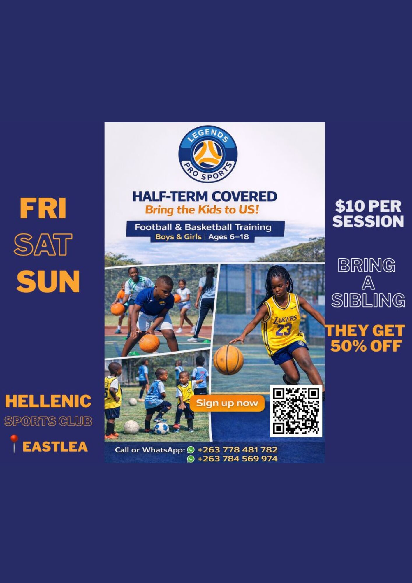 Half-term Covered Bring the kids to us this Friday, Saturday & Sunday at Hellenic Sports Club, Eastlea. $10 per session. Bring a sibling, and they get 50% off.