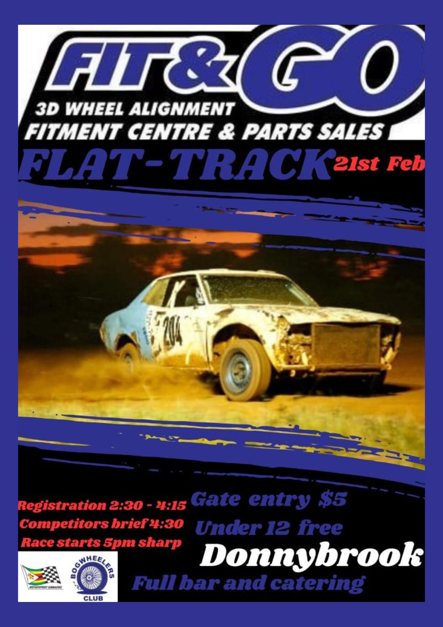 Fit&Go - Flat-track Gate entry $5 under 12 free. Donnybrook, Full bar and catering. registration 2.30 - 4.15 pm. Competitors brief 4.30. Race starts 5 pm