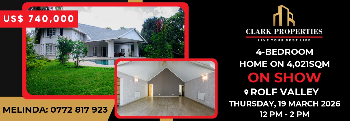 ROBERT ROOT PROPERTY CONSULTANTS PROPERTIES TO LET Northwood $2800 p/m Charming house comprising 4 bedrooms, 2 bathrooms (mes), office suite, lounge, dining, fitted kitchen, scullery, laundry room, double lock-up garage, double staff quarters, borehole and 10k litres water tank, 5kv or 8kv solar backup system, tennis court, swimming pool, electric gate and fence, well secured. Contact: Beauty +263714 805 470 Email- [email protected] Helensvale $5600 p/m